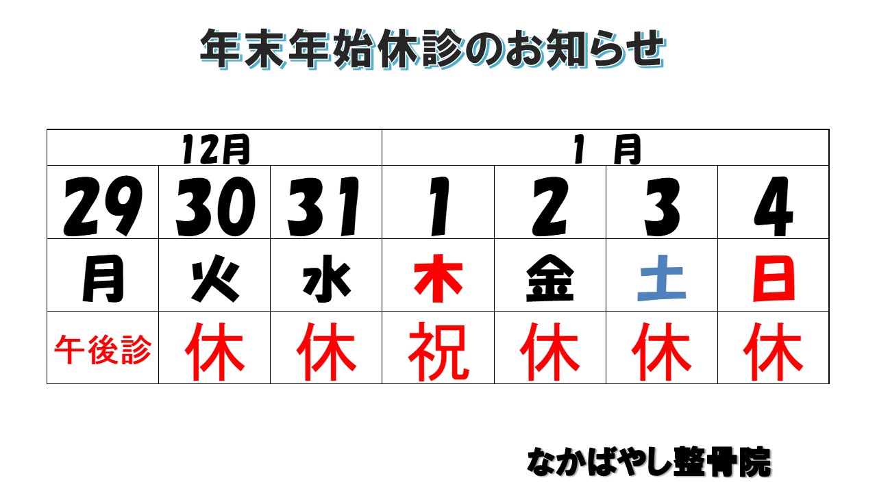 令和7年12月29日(月)午後診~令和8年1月4日(土)まで